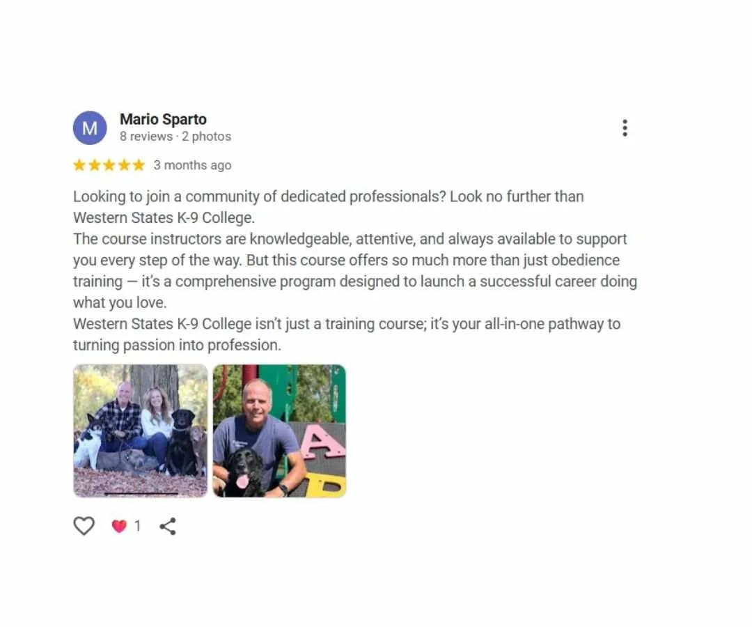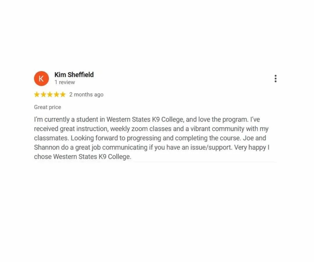 Comparable programs of this depth often cost $8,000–$10,000, but Western States K-9 College is committed to keeping world-class education accessible.